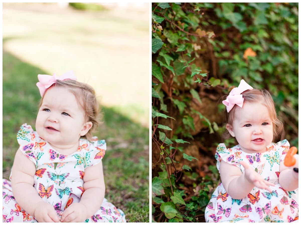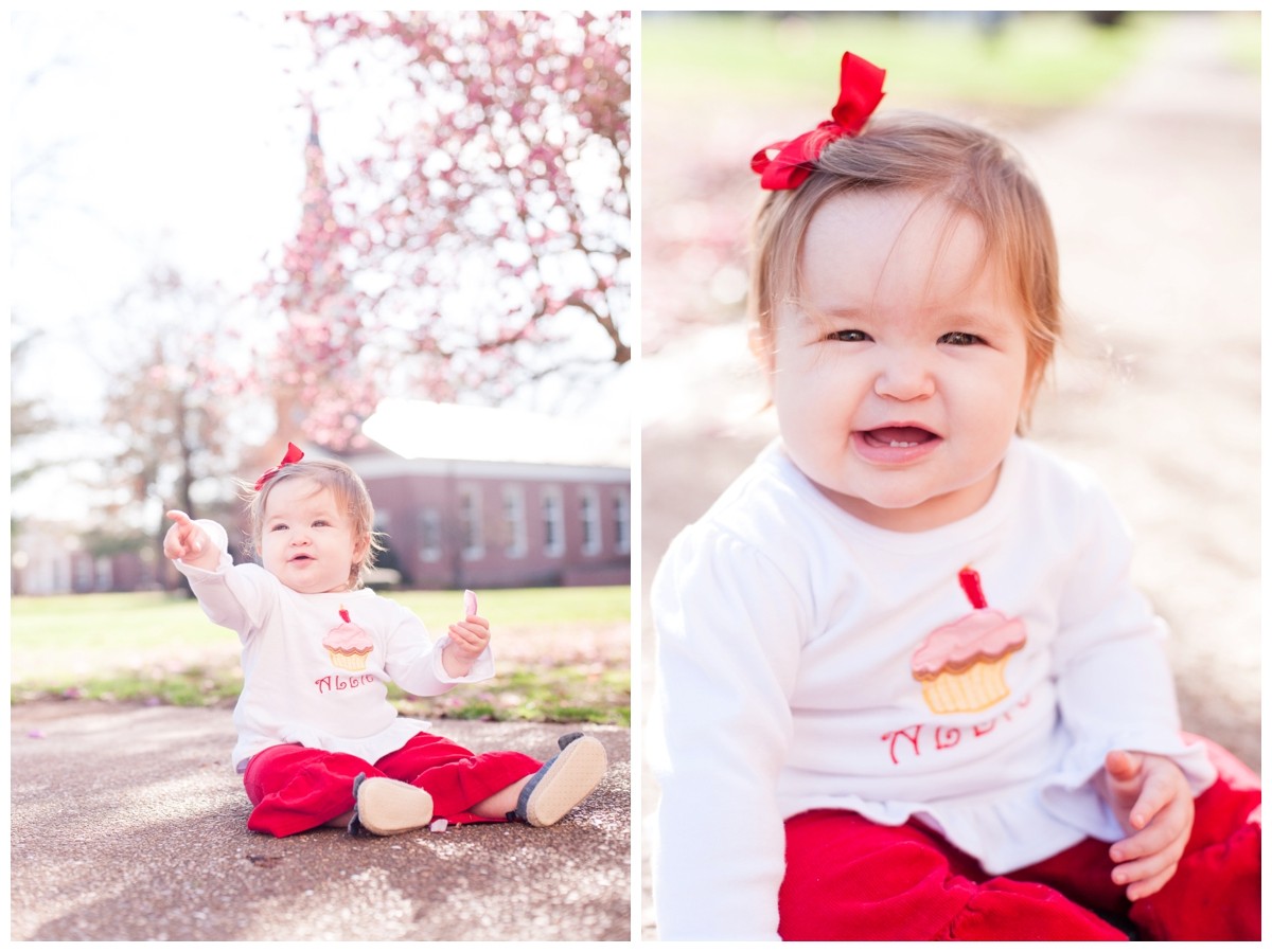 We chose University of Memphis, Lambuth Campus for Allie’s final baby club session. It was a great backdrop for her 1 year. And did you see her little butterfly dress?? I wish they made it in my size. It’s so cute. This sweet baby has gorgeous eyelashes and the most precious little cheeks.