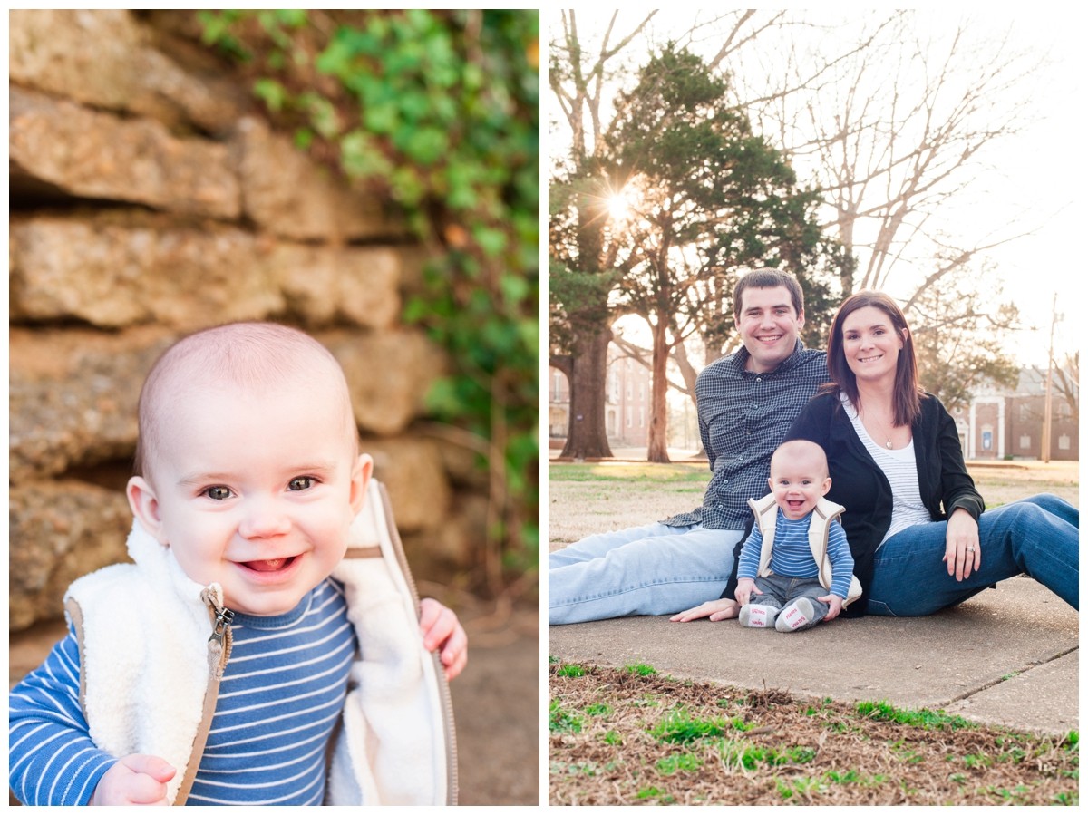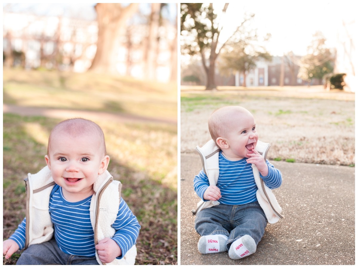 We decided to do his 6-month session at University of Memphis, Lambuth Campus. It’s a great campus for portraits. They have a really neat stone wall with ivy growing all over it. They have several beautiful old buildings and large trees all over campus. It can be a great option for a portrait session any time of year.